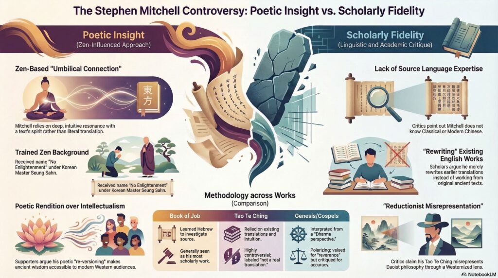 Stephen Mitchellâs work is widely recognized for its poetic beauty, clarity, and ability to make ancient texts resonant for contemporary readers. While his methods are sometimes debated by scholars, his interpretations are frequently praised for their spiritual depth and accessibility