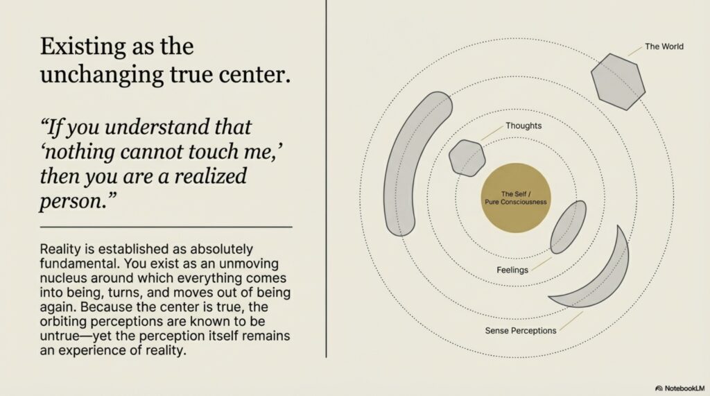 again. Because you always know yourself as this unchanging, true center, you automatically have the knowledge that what you perceive is not true, because, as perception, it is other than that center. On the other hand, because you always experience that true center, you do not experience your perceptions as false. You are always experiencing reality, even while you are perceiving something, and so perception is also an experience of reality for you.