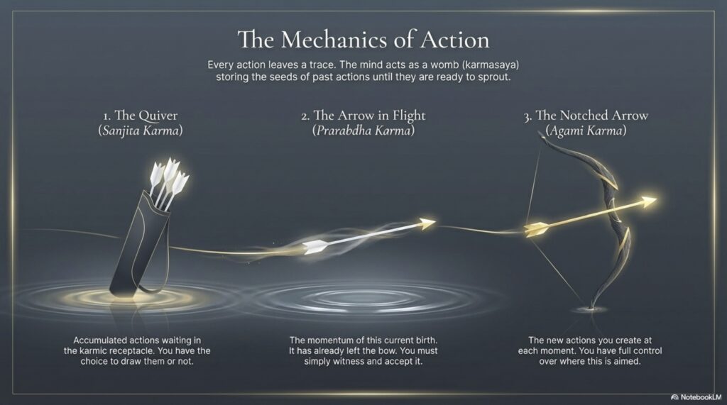 - Liberation (mokṣa) is through clear knowledge: hearing the teaching, reflecting, and contemplative assimilation (śravaṇa–manana–nididhyāsana).
