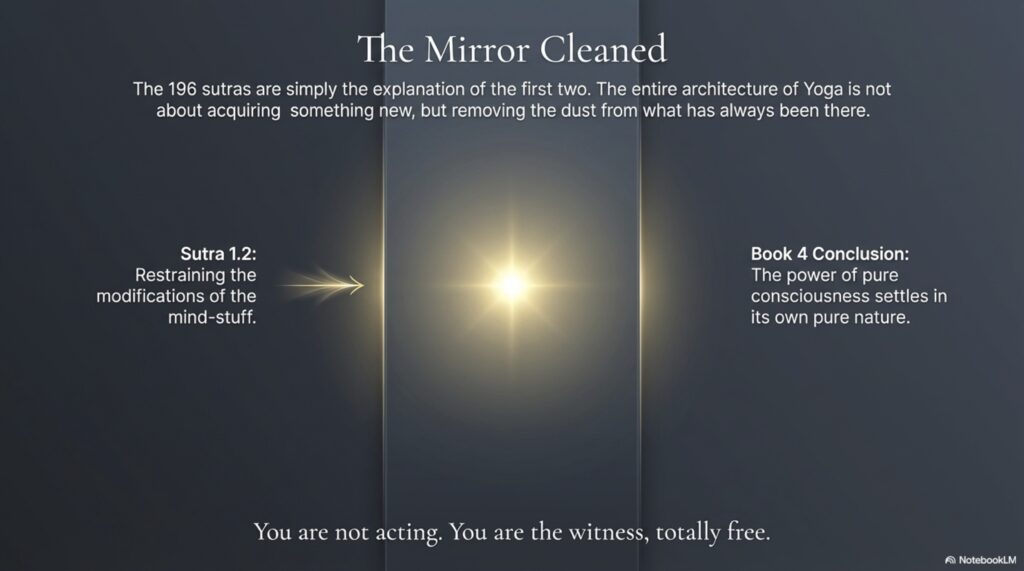 - Let the Yoga Sūtras guide how you live and practice (ethics, body–breath, attention, meditation).